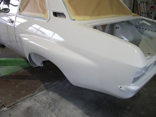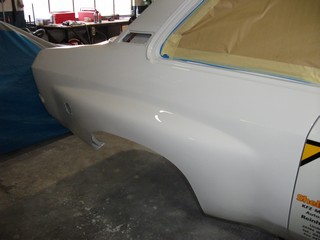 Gestern war es endlich soweit. Sämtliche Vorarbeiten waren abgeschlossen und die 500 Gramm Lack sollten nun aus der Verpackung gleichmäßig auf die Seitenwände verteilt werden. Das Ergebnis ist mehr als zufrieden stellend. Und wieder ein Schritt weiter am Museumsstück. Ja, auch wenn viele Fragen und uns für verrückt erklären, der "Dicke" soll zurück auf die Wertungsprüfungen! Denn nur zum Ansehen ist er dann auch zu Schade...